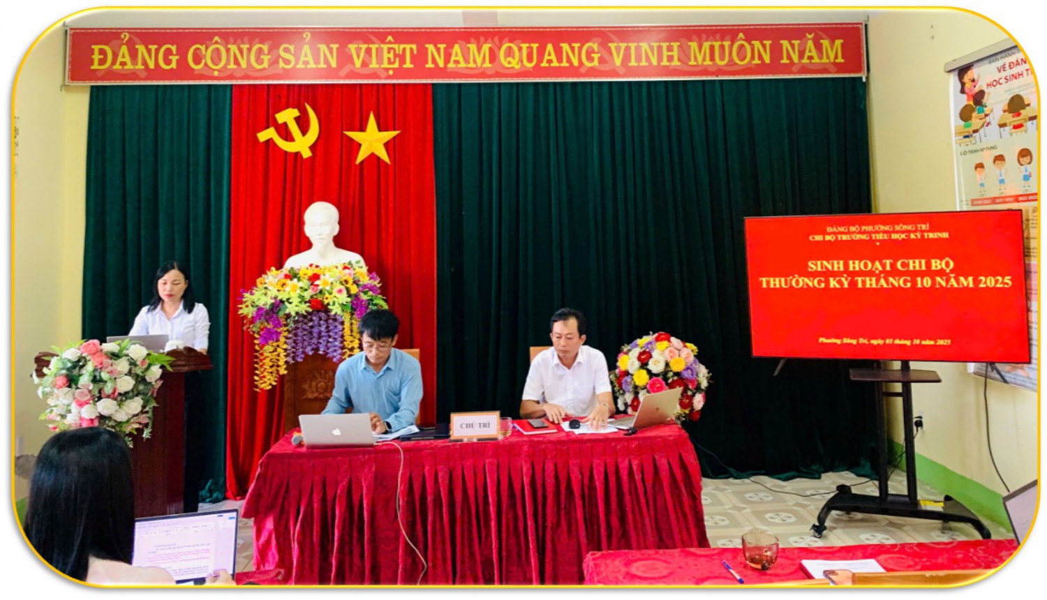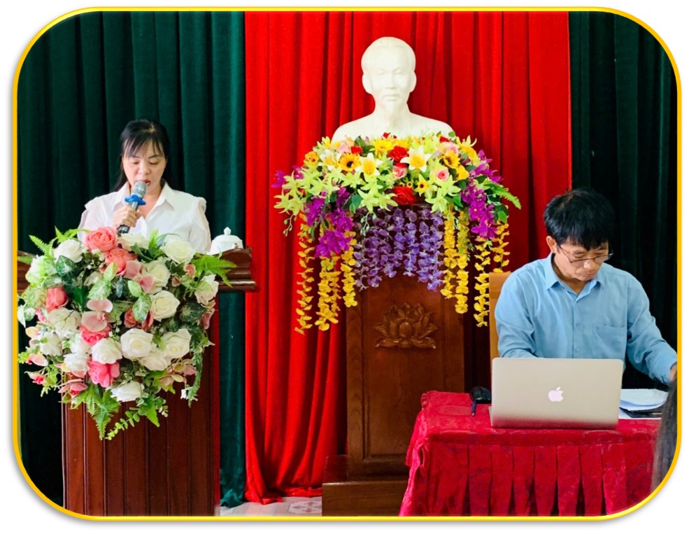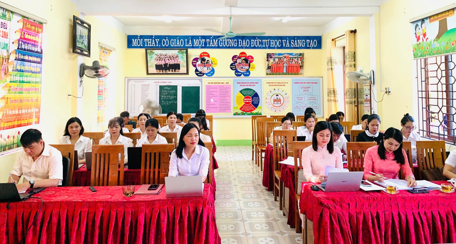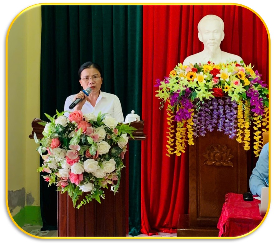 Đồng chí Bí thư Chi bộ báo cáo kết quả công tác tháng 9 và nhiệm vụ trọng tâm tháng 10; kết quả Chi bộ đã lãnh đạo thực hiện tốt công tác chính trị, tư tưởng; tổ chức khai giảng năm học mới trang trọng; tổ chức thành công Hội nghị viên chức, kiện toàn bộ máy quản lý, huy động phụ huynh cùng chăm lo cảnh quan trường lớp. Các đảng viên cơ bản hoàn thành tốt nhiệm vụ, không có vi phạm. Bước sang tháng 10, Chi bộ tập trung đẩy mạnh tuyên truyền chủ trương, chính sách của Đảng và Nhà nước; phối hợp các lực lượng khắc phục hậu quả sau bão số 10, ổn định dạy học; tiếp tục tham mưu xây dựng, sửa chữa cơ sở vật chất, huy động tài trợ, trang trí lớp học và vận động 100% học sinh tham gia BHYT.