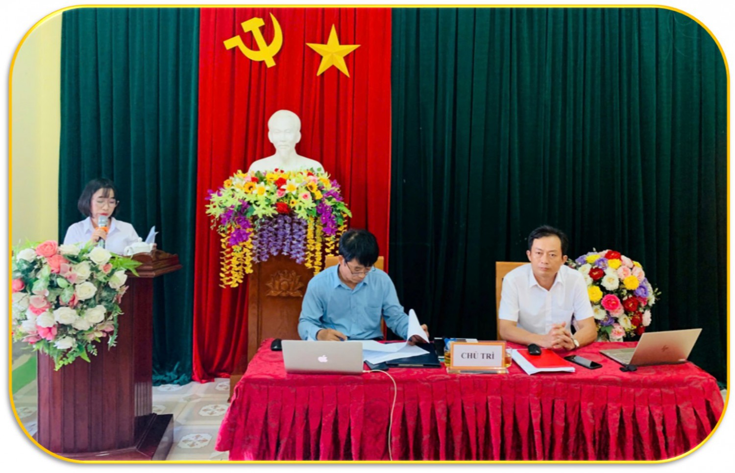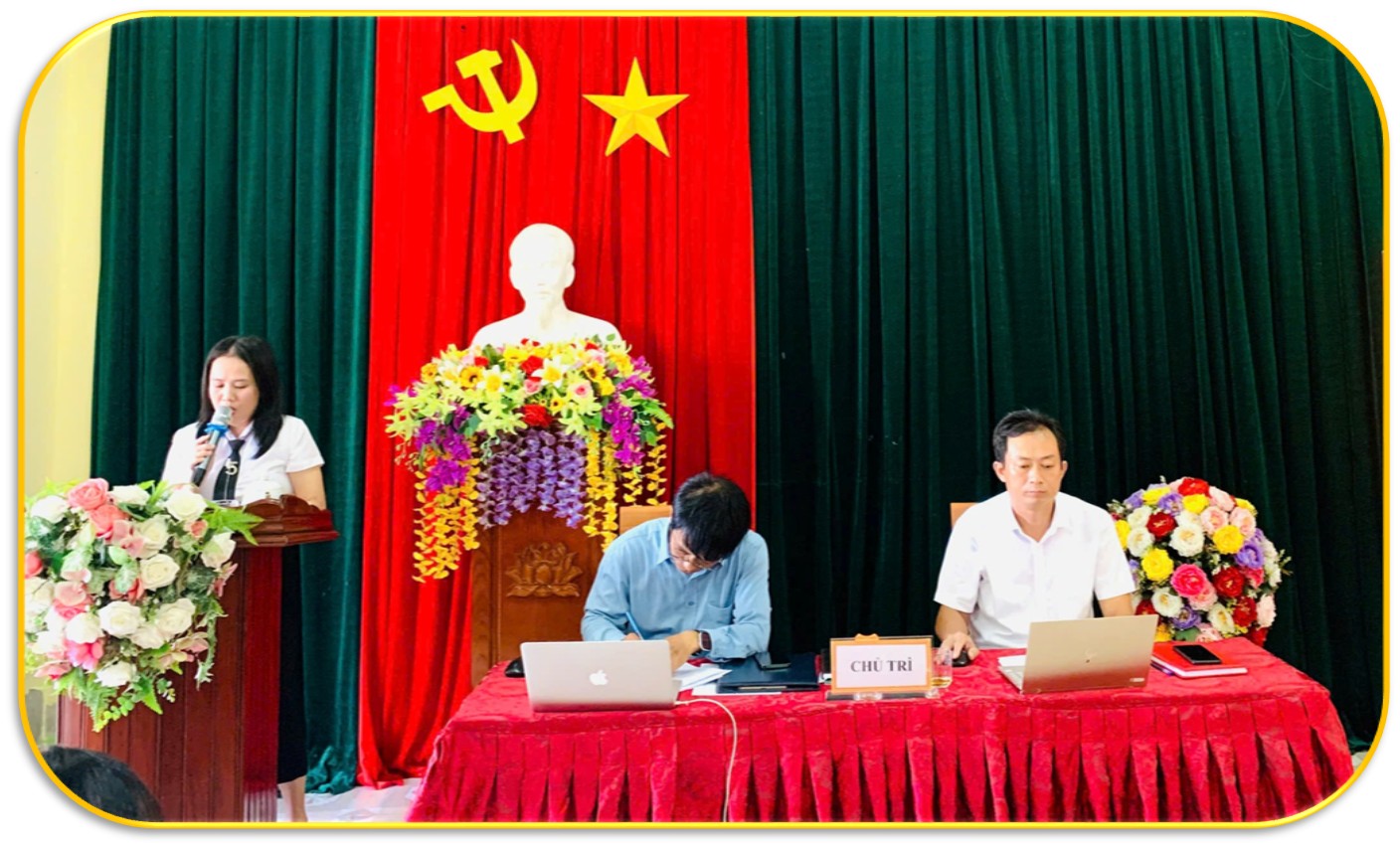 Mở đầu buổi sinh hoạt, đồng chí Trần Minh Đức, Bí thư Chi bộ ổn định tổ chức, đặt vấn đề trọng tâm, giới thiệu đại biểu tham dự, báo cáo tình hình đảng viên có mặt, vắng mặt và thông qua chương trình sinh hoạt.