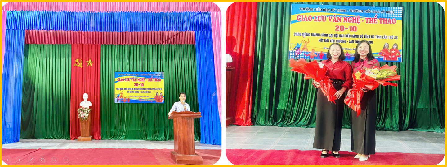 Nằm trong chuỗi hoạt động thi đua sôi nổi lập thành tích chào mừng thành công Đại hội đại biểu Đảng bộ tỉnh Hà Tĩnh lần thứ XX, nhiệm kỳ 2025–2030, đồng thời hướng tới Kỷ niệm 95 năm Ngày thành lập Hội Liên hiệp Phụ nữ Việt Nam (20/10/1930 – 20/10/2025), chiều ngày 17/10/2025, tại Trường Tiểu học Kỳ Trinh đã diễn ra Chương trình giao lưu văn nghệ - thể thao do Trường Tiểu học Kỳ Trinh phối hợp với Trường Tiểu học Kỳ Ninh tổ chức. Buổi lễ được tổ chức trong không khí vui tươi, phấn khởi, là hoạt động ý nghĩa góp phần tăng cường mối quan hệ gắn bó, lan tỏa tinh thần đoàn kết, yêu thương và chia sẻ giữa hai đơn vị nhà trường.