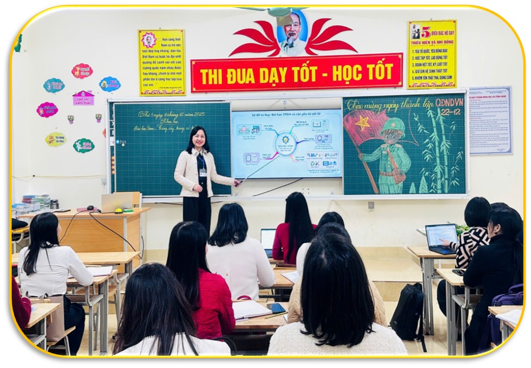 Chuyên đề được triển khai theo mô hình “Lớp học đảo ngược”: giáo viên tự nghiên cứu tài liệu trước, sau đó dự giờ tiết dạy minh họa môn Khoa học lớp 5 với chủ đề STEM “Trồng cây trong vỏ trứng” do cô giáo Nguyễn Thị Hà Trang thực hiện. Tiết dạy thể hiện rõ quy trình tổ chức hoạt động giáo dục STEM ở cấp tiểu học, từ xác định vấn đề – thiết kế giải pháp – thực hành chế tạo – thử nghiệm và báo cáo sản phẩm.